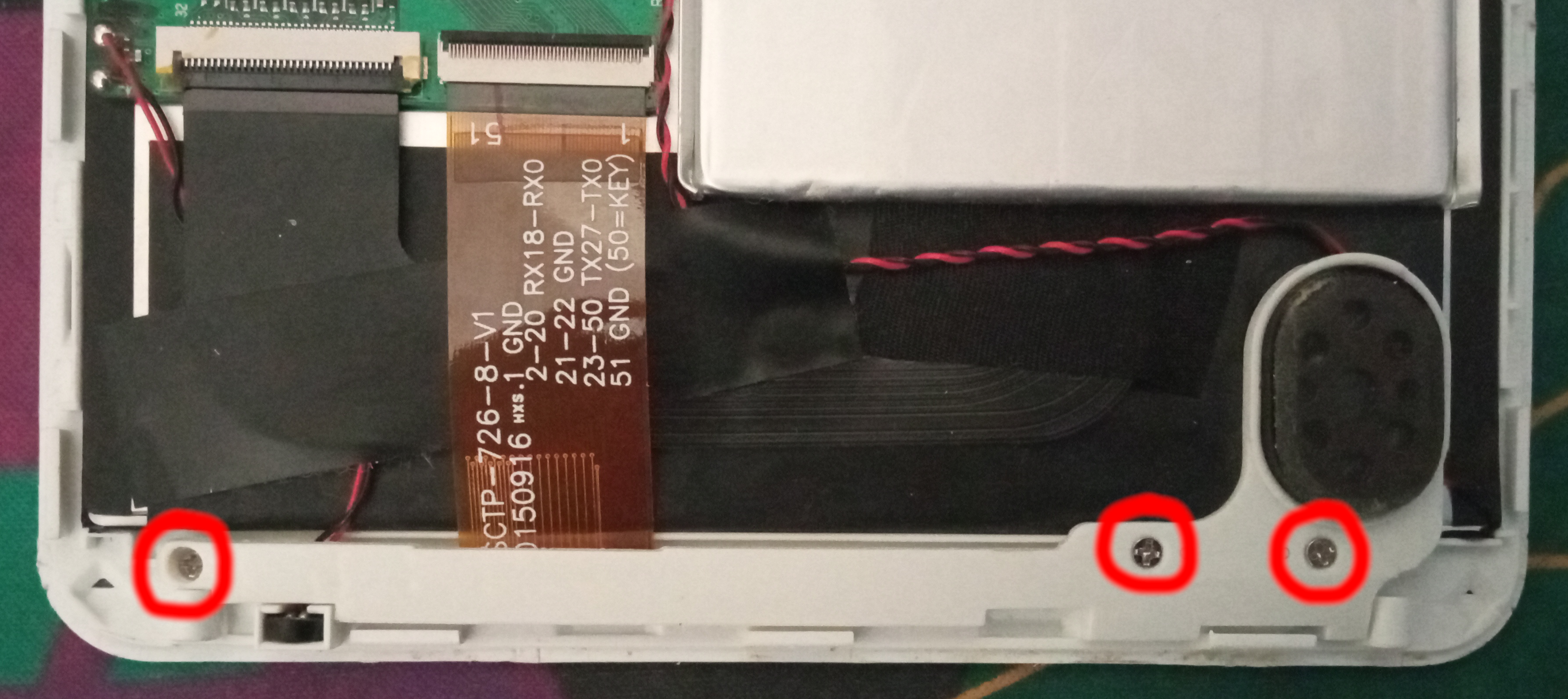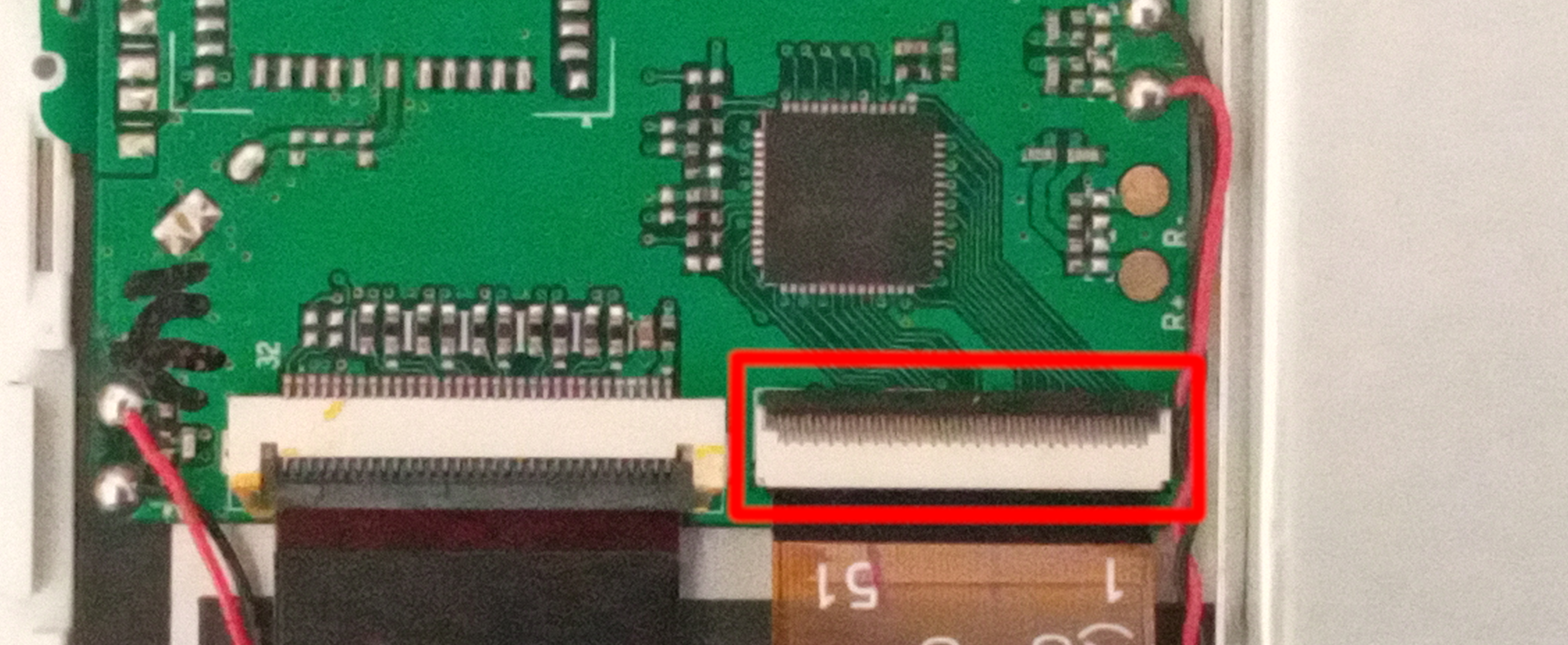 Connect the ribbon cable. I've found that you have to plug it in at a slight angle. This may be because I misaligned the touchscreen, or just because it's made for a different device.